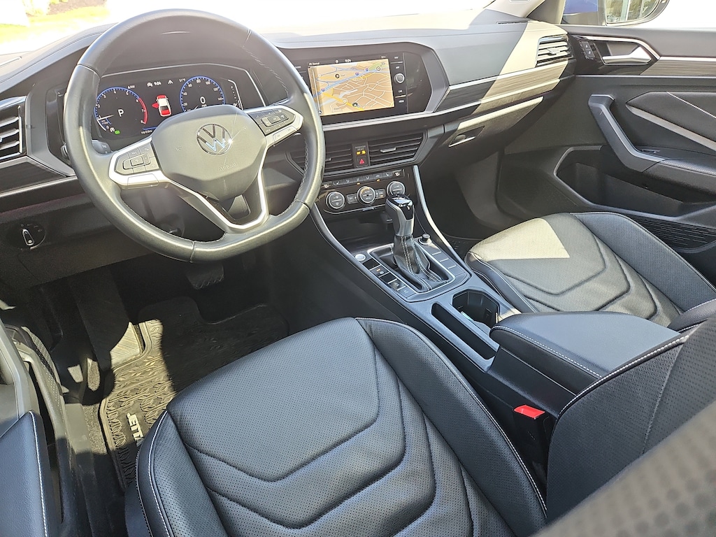 Lane Assist (Lane Keeping System) Lane Departure Warning, Front Assist (Forward Collision Warning and Autonomous Emergency Braking), Back-Up Camera, Active Blind Spot Monitor Blind Spot, Wireless Phone Connectivity, Wheels: 17" 2-Tone Machined Alloy, VW Car-Net Safe & Secure 5-year Tracker System, Vienna Leather Seat Trim, Trunk Rear Cargo Access, Transmission: 8-Speed Automatic w/Tiptronic. This Volkswagen Jetta has a dependable Intercooled Turbo Regular Unleaded I-4 1.5 L/91 engine powering this Automatic transmission.