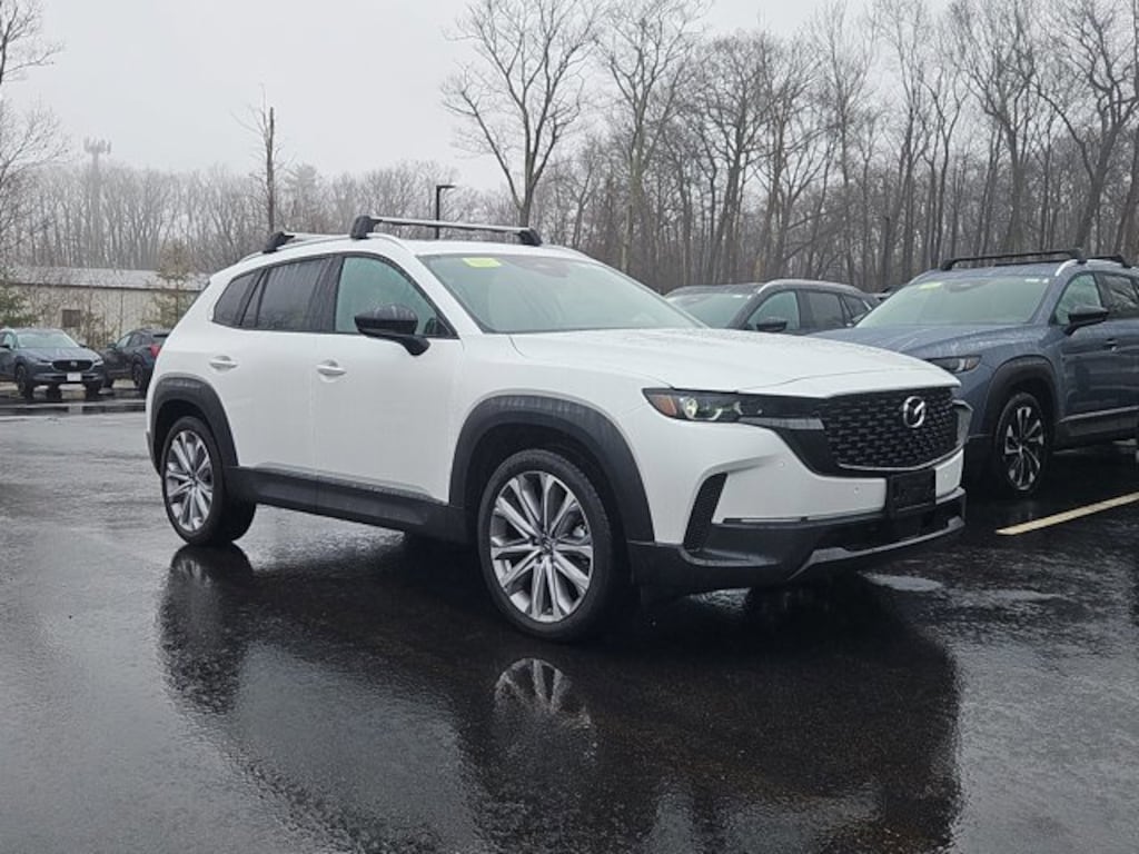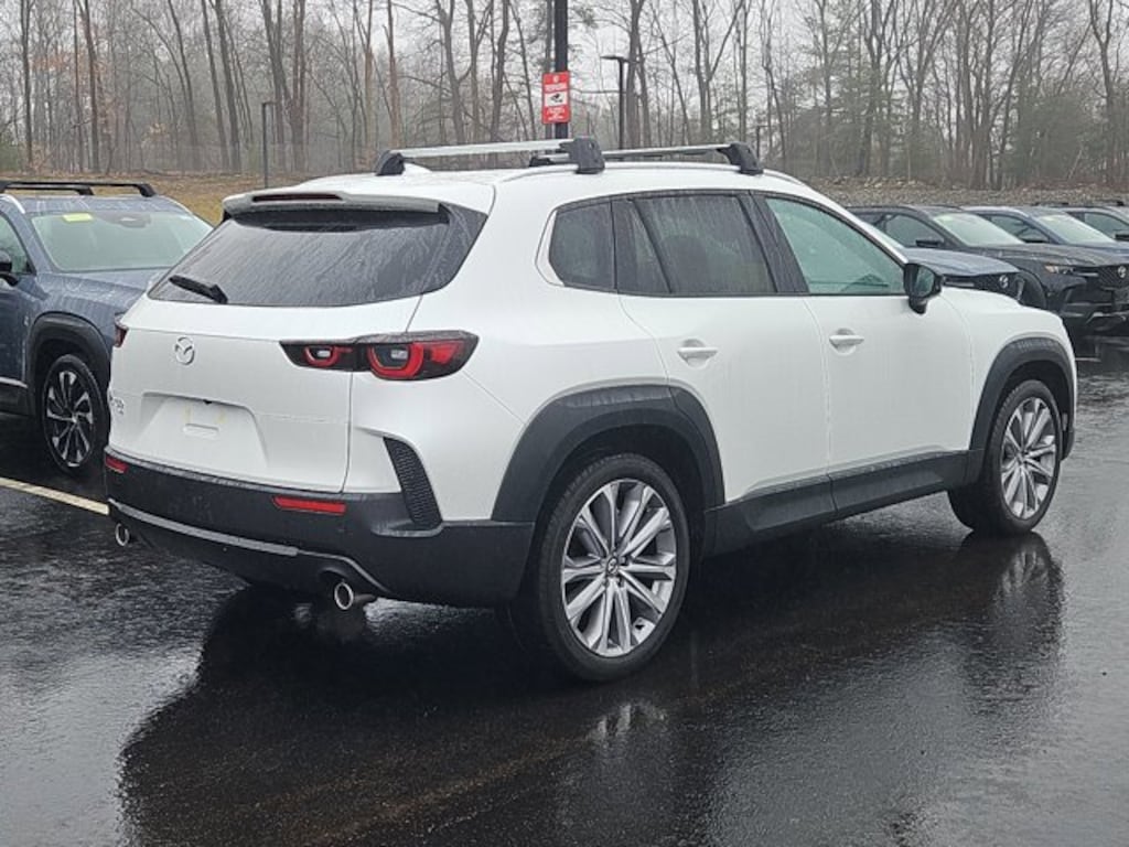 Scores 30 Highway MPG and 24 City MPG! This Mazda CX-50 delivers a Regular Unleaded I-4 2.5 L/152 engine powering this Automatic transmission. WIND CHILL PEARL & WHITE INTERIOR, WIND CHILL PEARL, WHITE, LEATHER SEAT TRIM -inc: 20 x 8J Aluminum Alloy Silver Metallic Wheels w/Machining Cut.
